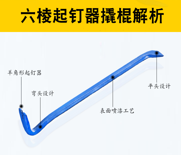 高硬度耐用碳钢铁路消防用六棱撬棍羊角撬棍起钉器钢钎可定制